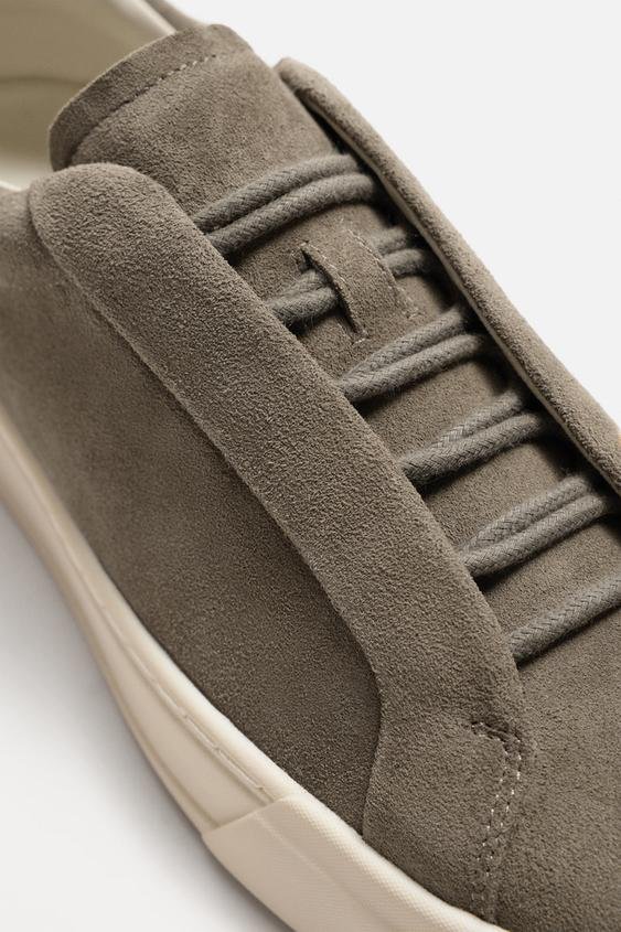 Leather sneakers with a split leather finish. Hidden lace-up detail. Lightweight chunky sole.