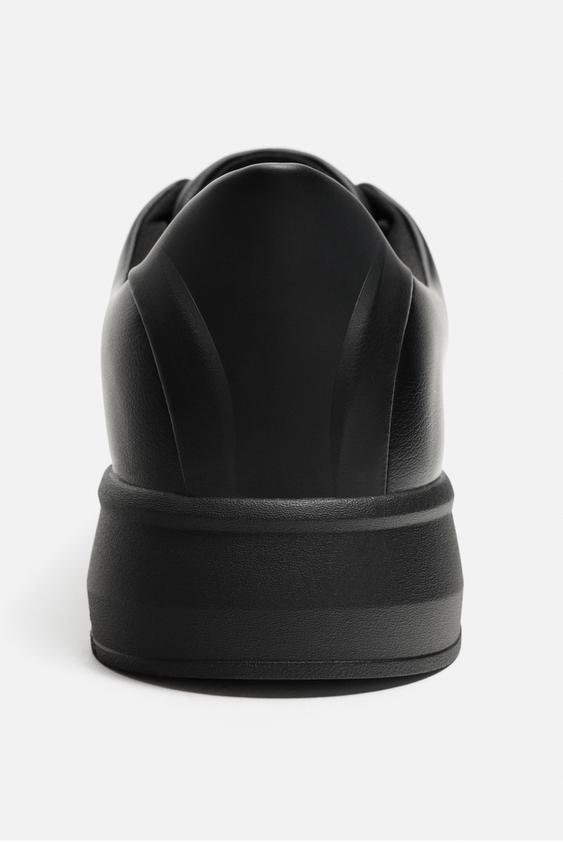Monochrome lace-up sneakers. Smooth upper. Chunky sole.