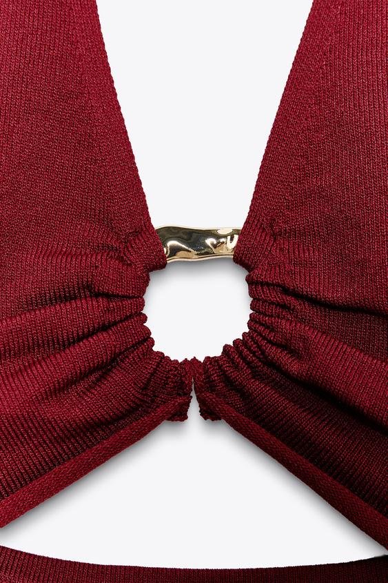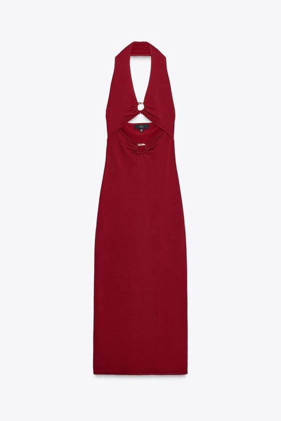 CUT OUT KNIT MIDI DRESS MID-RED